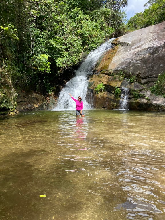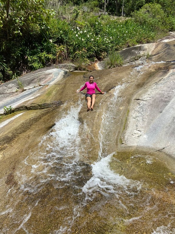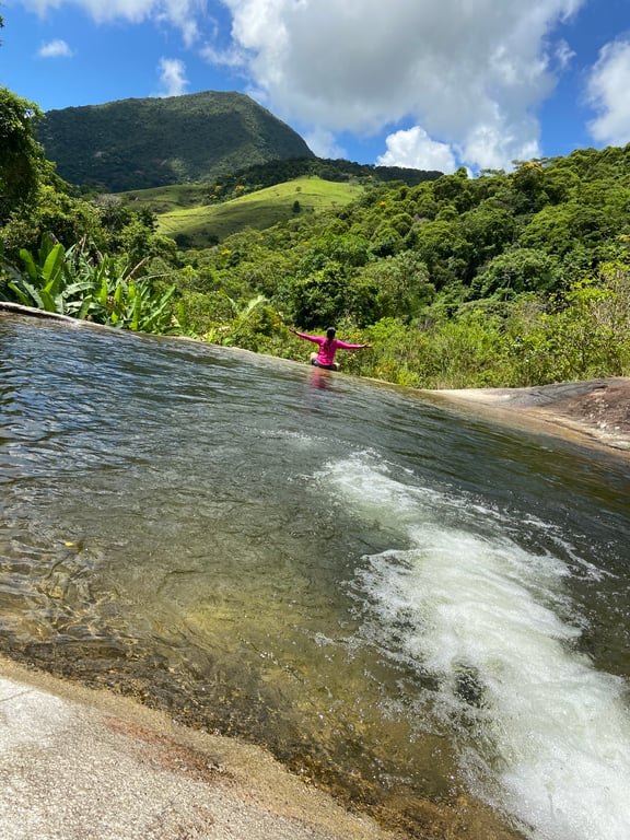 Trilha Intermediária, caminharemos por 50 minutos até a Cachoeira do Roque e depois caminharemos mais 30 minutos para acessar o Tobogã e a Cachoeira da feiticeira