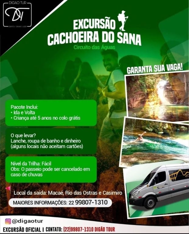 Atenção: A excursão para o Sana não é realizado pela TurisMacaé, somos parceiro dos guias locais para divulgação dos passeios.